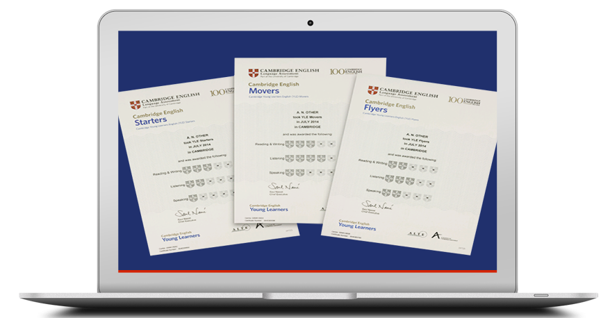 Los resultados de Cambridge English Qualifications: Pre A1 Starters, A1 Movers o A2 Flyers sólo se obtienen a través de los certificados impresos y los mismos llegan a Rosario Examinations Centre.