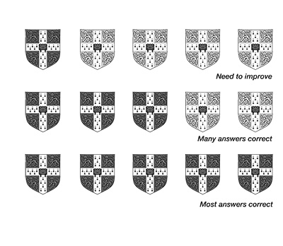 En los exámenes de YL cada una de las partes se puntúa empleando una serie de notas especiales, los denominados “escudos”. Los escudos corresponden a un porcentaje de la nota final del examen, de manera que la nota máxima que se puede alcanzar a nivel global es de 15 escudos. Por cada destreza, se puede conseguir un total de 5 escudos.