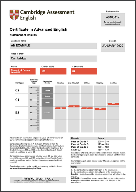 Un "Certifying Statement" contiene toda la información del certificado original, tiene la validación y reconocimiento de Cambridge y se puede presentar como constancia oficial de su resultado.